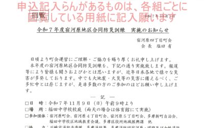 令和7年度宿河原地区合同防災訓練 実施のお知らせ NEW!